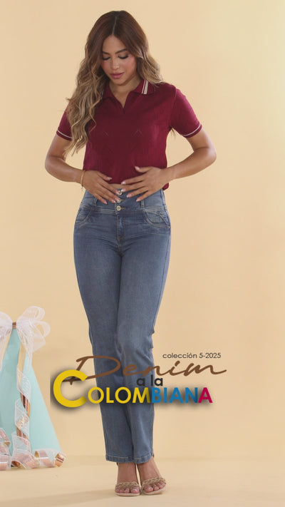 El Jean Clásico CHOCÓ aporta un aire retro con su tono azul vintage y corte recto. Confeccionado en índigo licrado, ofrece comodidad y realce gracias a su tiro súper alto y costuras visibles que estilizan la figura. Hecho en Colombia.