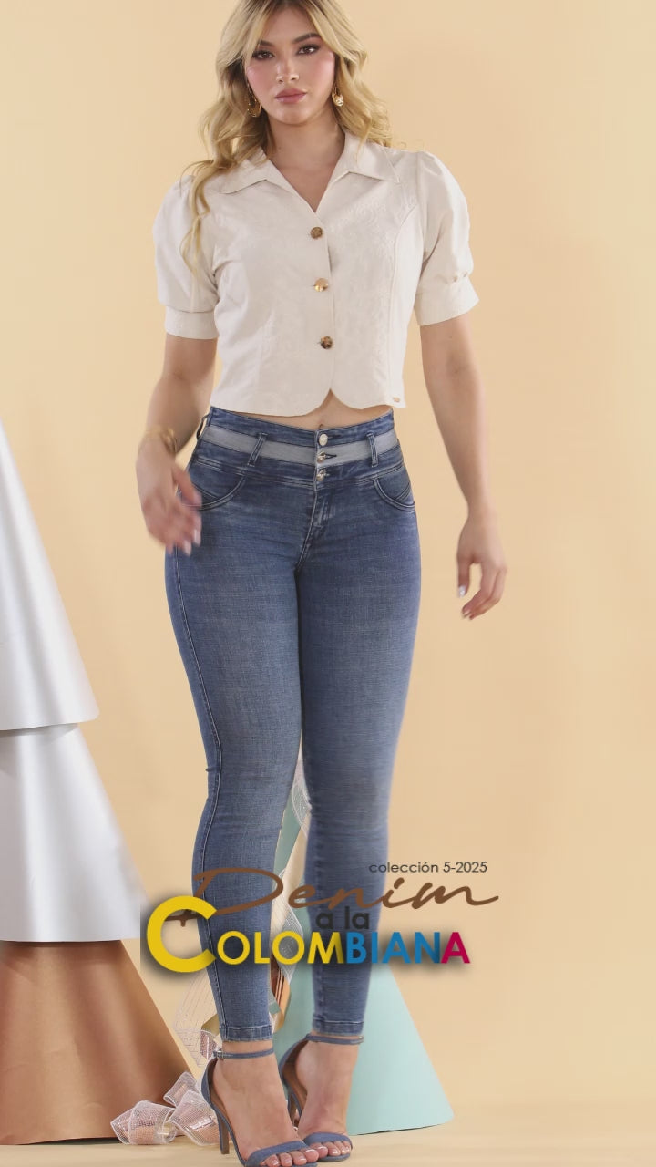 El Jean MANIZALES ofrece un equilibrio ideal entre comodidad y estilo. Con su tiro alto y corte en la cintura que realza la silueta, este diseño se adapta perfectamente al cuerpo gracias a su tejido índigo súper licrado. Su tono azul medio y acabado limpio lo convierten en un básico moderno para cualquier ocasión. Hecho en Colombia.