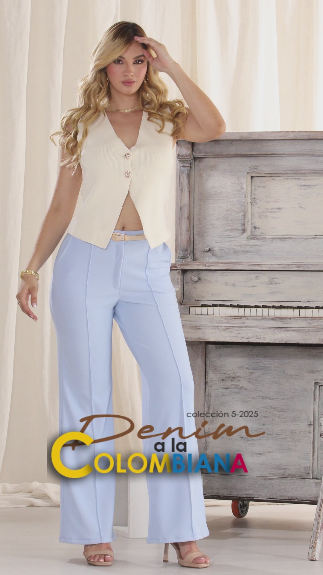El Pantalón AGUADAS es elegante y moderno a la vez. Su tiro súper alto y corte campana estilizan la figura, mientras que su tono azul glacial lo convierte en una pieza de temporada perfecta para looks sofisticados. Hecho en Colombia.